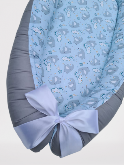 Je popolen dodatek k obstoječi osnovni otroški opremi. Lahko ga položite na sedežno, na posteljo ali pa kar na tla in ne bo vam potrebno skrbeti za varnost in udobje vašega dojenčka.