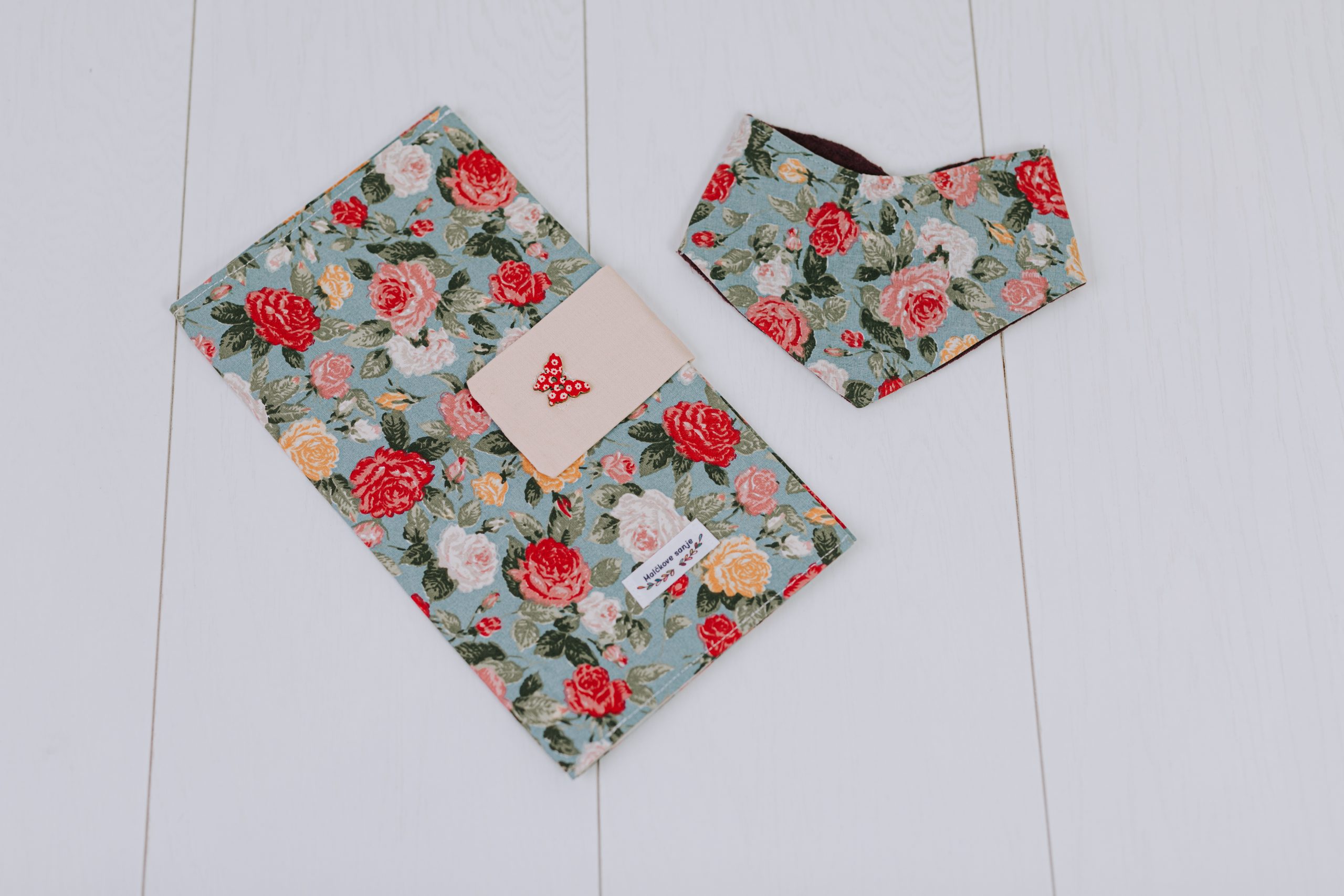 Komplet torbica za pleničke + rutka “Roses”